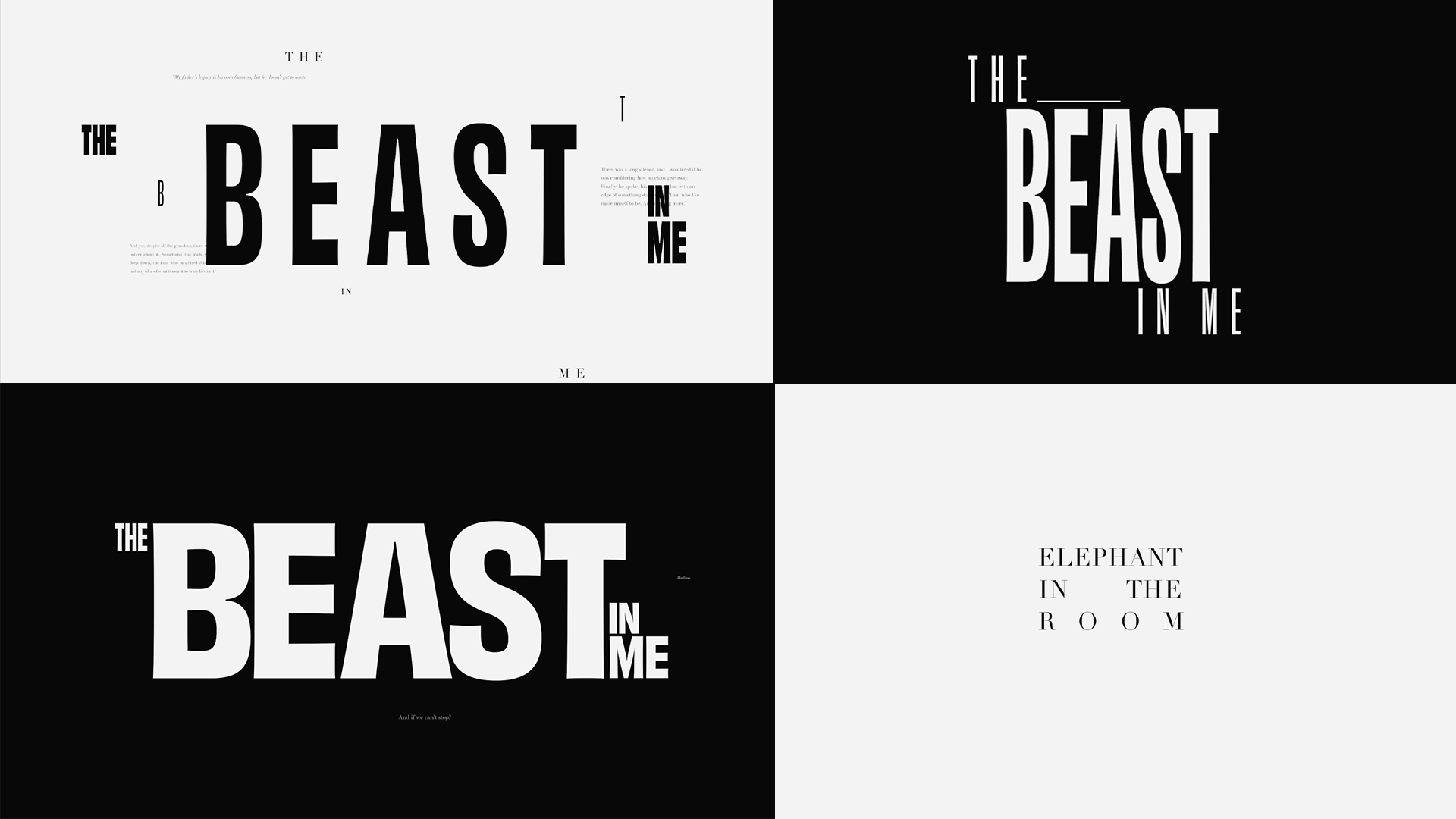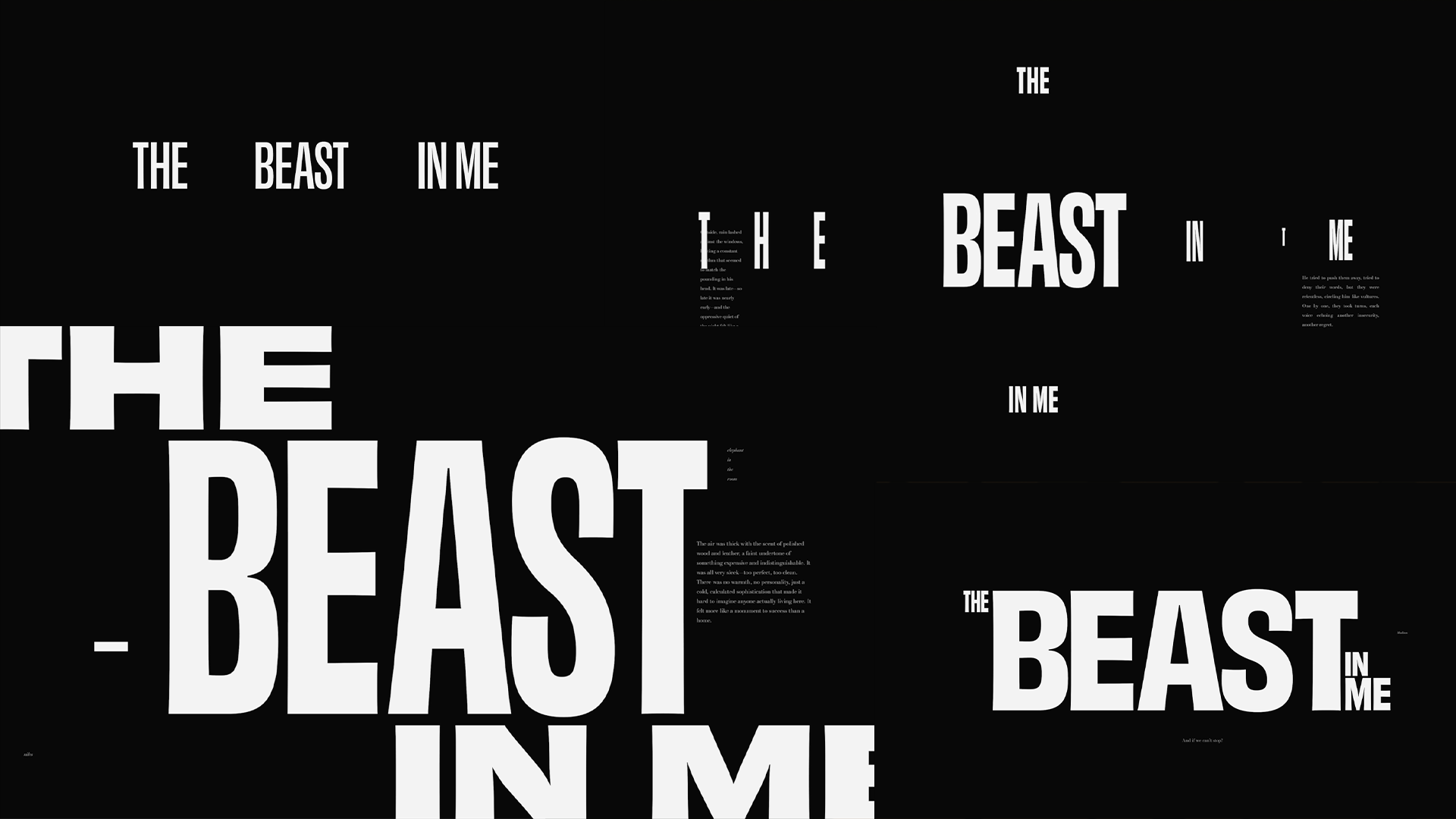 When I was a design student, one of our first assignments was to tell a story using only 1x1 black squares. How do you show war? How do you show peace? It was all about spacing, rhythm, tension. That exercise came back to me immediately. I began experimenting with the distance between words, their weight, their balance, letting proximity and scale describe emotion.