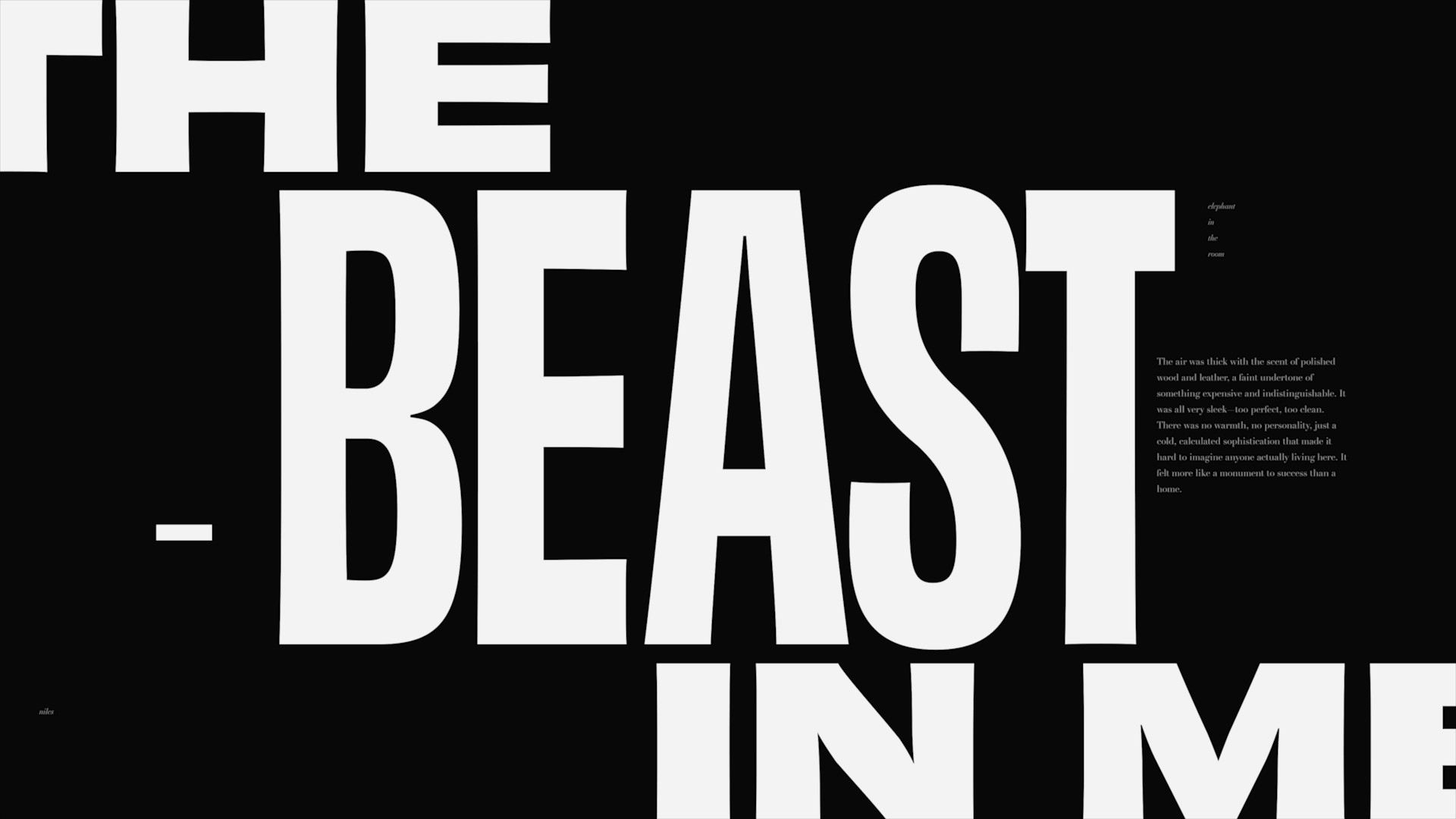 We also created bespoke animations and custom layouts for each chapter title. Even those small moments were opportunities to tell story. My favorite is Episode 7; when “Beast” subtly lingers behind the chapter name “Ghosts.” It’s a small detail, but it says everything.