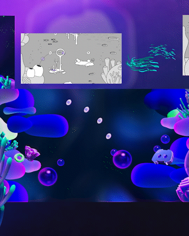 So we used the orbs as part of the “game” we designed. We used them as portals to transition to the other style which helped us loop the video perfectly.